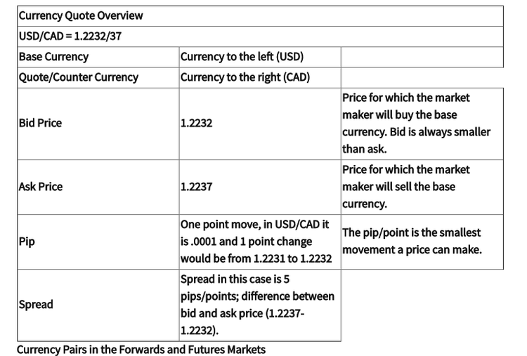 Una delle principali differenze tecniche tra i mercati forex è il modo in cui le valute vengono quotate. Nei mercati a termine o futures la valuta straniera viene sempre quotata contro il dollaro USA. Ciò significa che il prezzo viene attribuito in base a quanti dollari USA occorrono per acquistare una unità dell’altra valuta. Si ricorda che nel mercato spot alcune valute sono quotate contro il dollaro USA mentre, in altri casi, il dollaro USA viene quotato contro di esse. Ciò comporta che le quotazioni del mercato a termine/futures e del mercato spot non procedono sempre parallelamente.