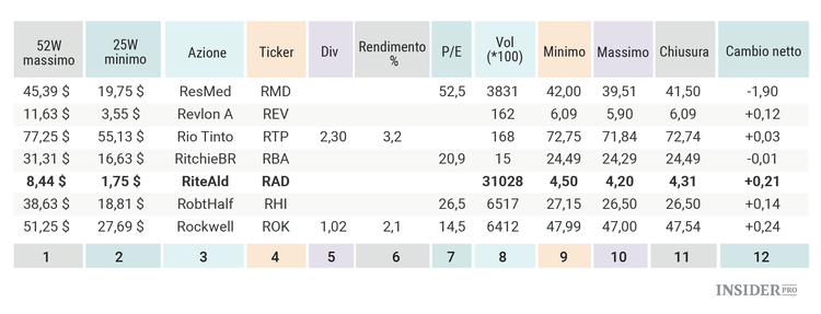 Se ti capita sotto mano un giornale finanziario, vedrai che ci sono dei riquadri di quote azionarie che assomigliano a questo qui sotto: