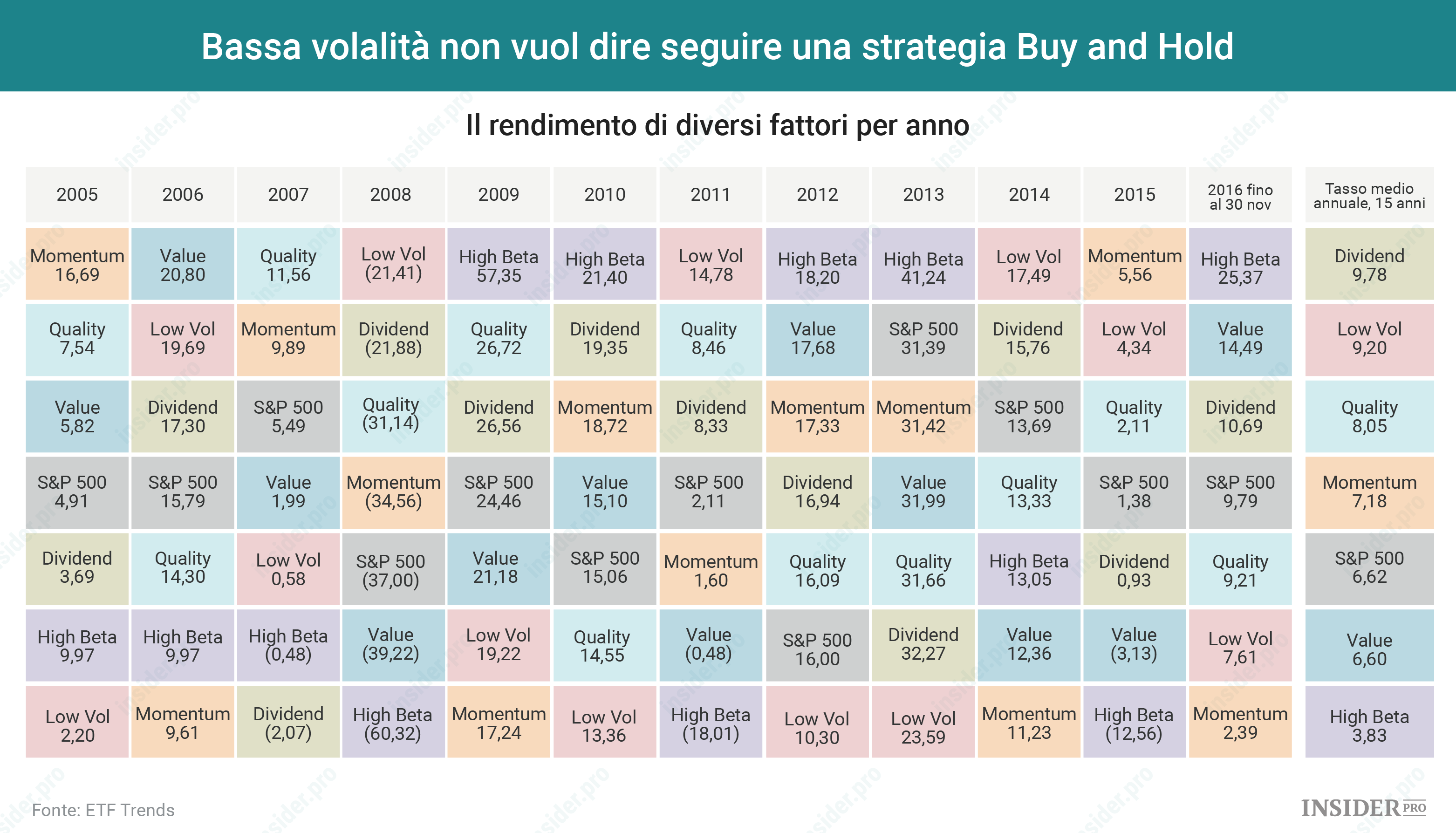 ETF: il rendimento di diversi fattori a confronto negli anni